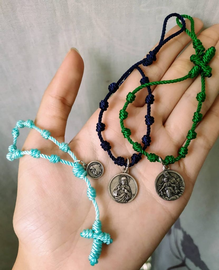 Since then, I have made many knotted rosaries, rosary bracelets and pocket rosaries to my friends in university, hoping that these little items may serve them well. From just being a little hobby of mine, the passion grew and I took a lot of courage to start a tiny business with my knotted rosaries, which then, came later, some additions to the family: beaded rosaries, bracelets, temporary tattoos, keychains etc.