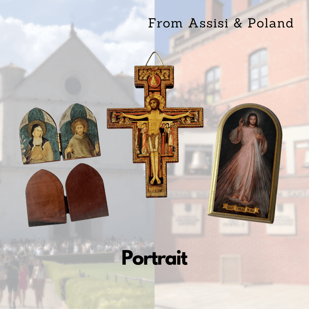 | Portrait | Sts Francis and Clare of Assisi (Assisi, stand), San Damiano cross (Assisi, hang), Divine Mercy (Poland, stand/hang) |