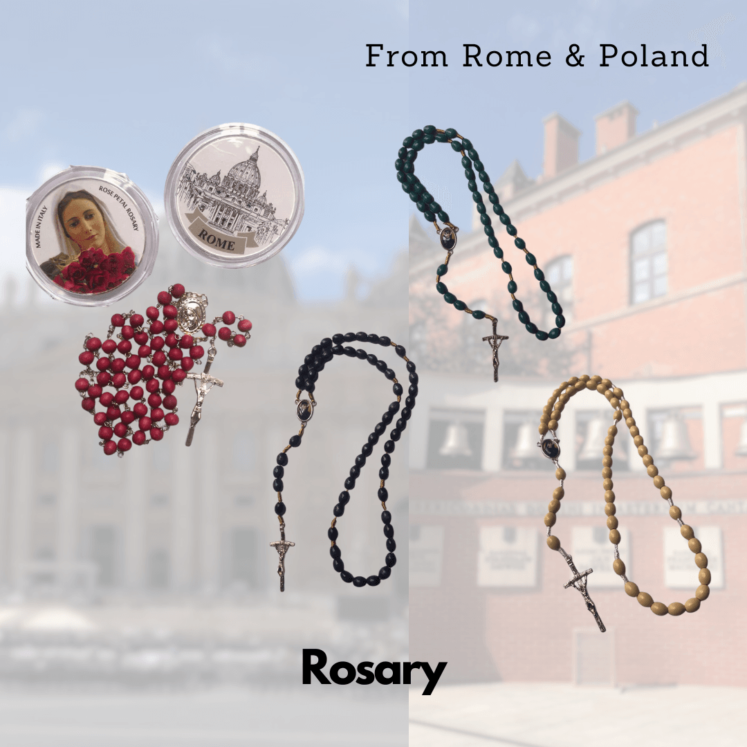 Rose Petal (Rome), St Faustina (cream, Poland), St Faustina (dark blue, Poland), St Faustina (dark green, Poland)